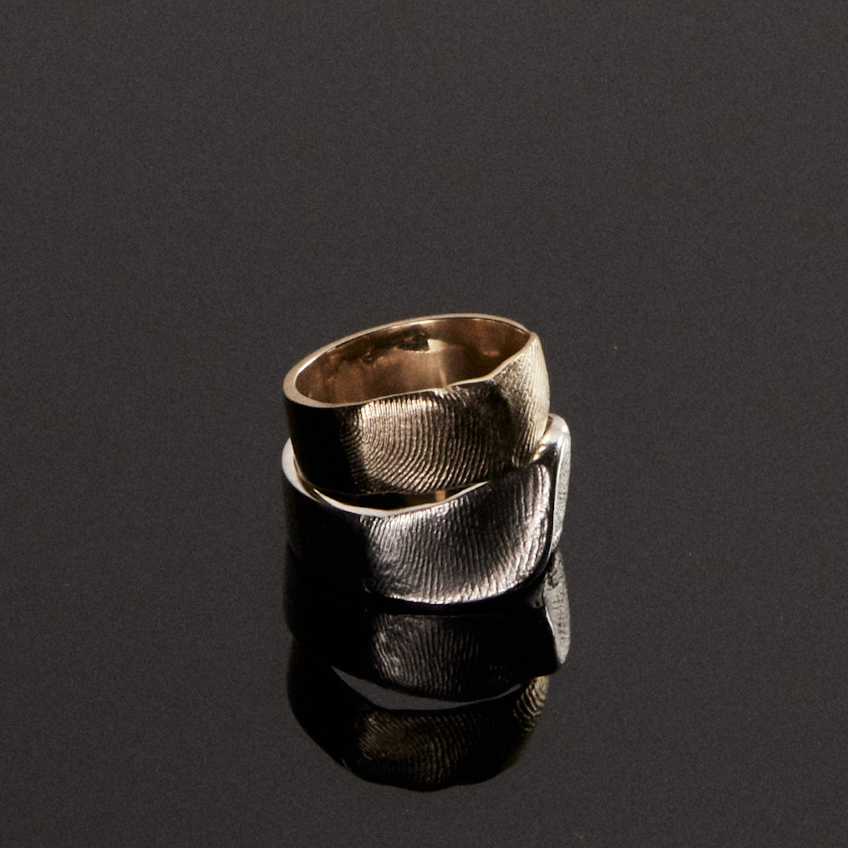 Using a lost wax casting technique, we are able to create custom fingerprint pieces that are completely unique in shape and print, allowing you to hold a special piece of your loved one close to you. The beauty of this process is that you have complete creative control over how the finished piece will look.