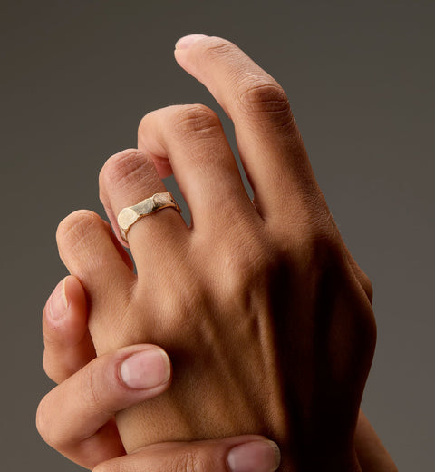 Cast in four precious metals, each ring may be worn simply as a statement of organic beauty. Over time, you may choose to add birthstones and engravings, allowing the piece to deepen with meaning as you and your story evolve.
