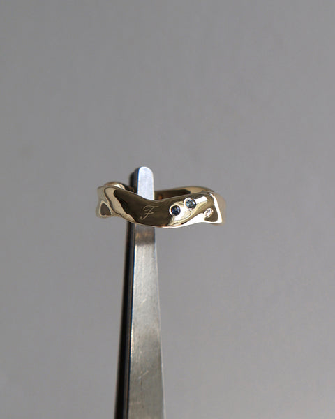 Custom Wave Ring (Stone & Engraving) | Yellow Gold
