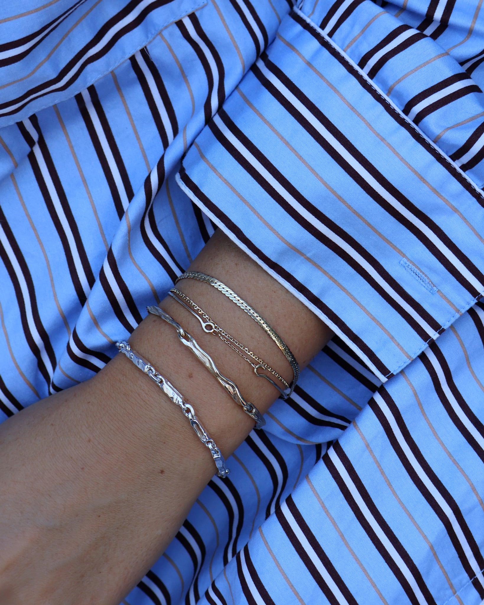 Sterling Silver. 4mm hammered bars. If custom length is selected, please specify the length you would like in the summary box at checkout.