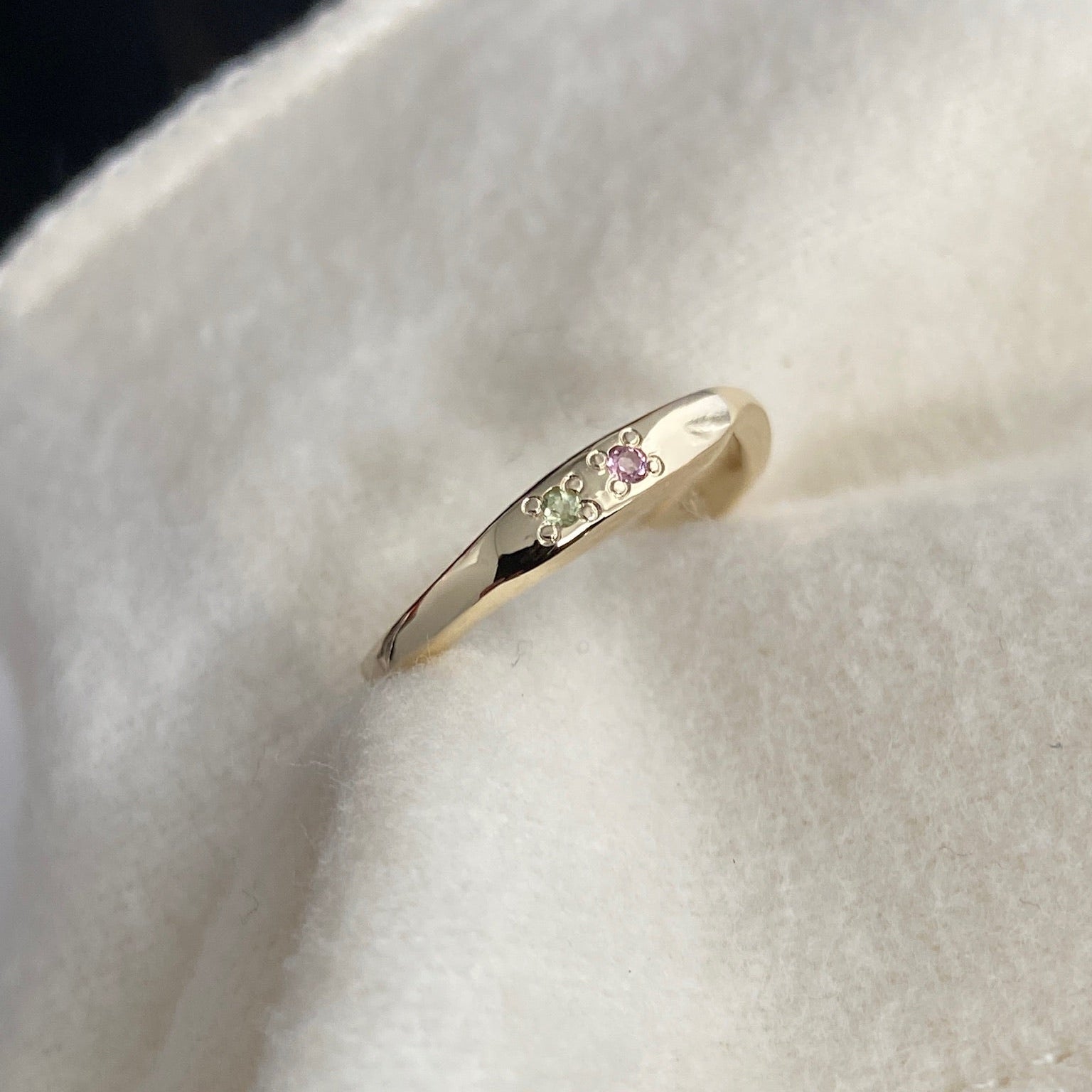 Solid 9k Yellow Gold with up to five 1.5mm natural stones of your choice.