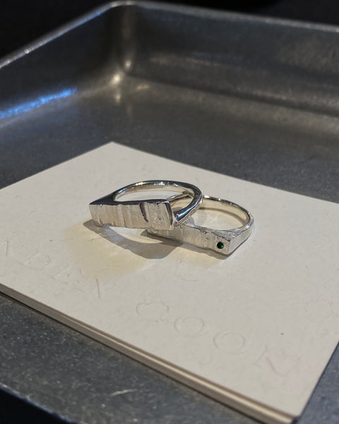 Curved Veil Stone Ring | Silver