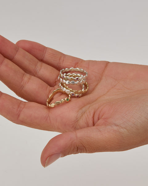 Pebble Stack Stone Ring | Solid White Gold