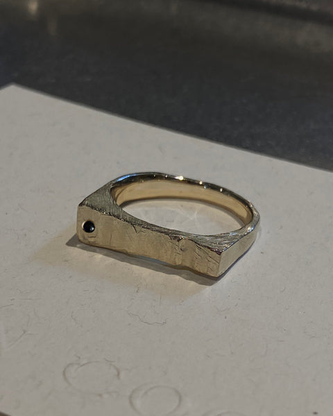 Hammered Stone Ring | Solid Yellow Gold