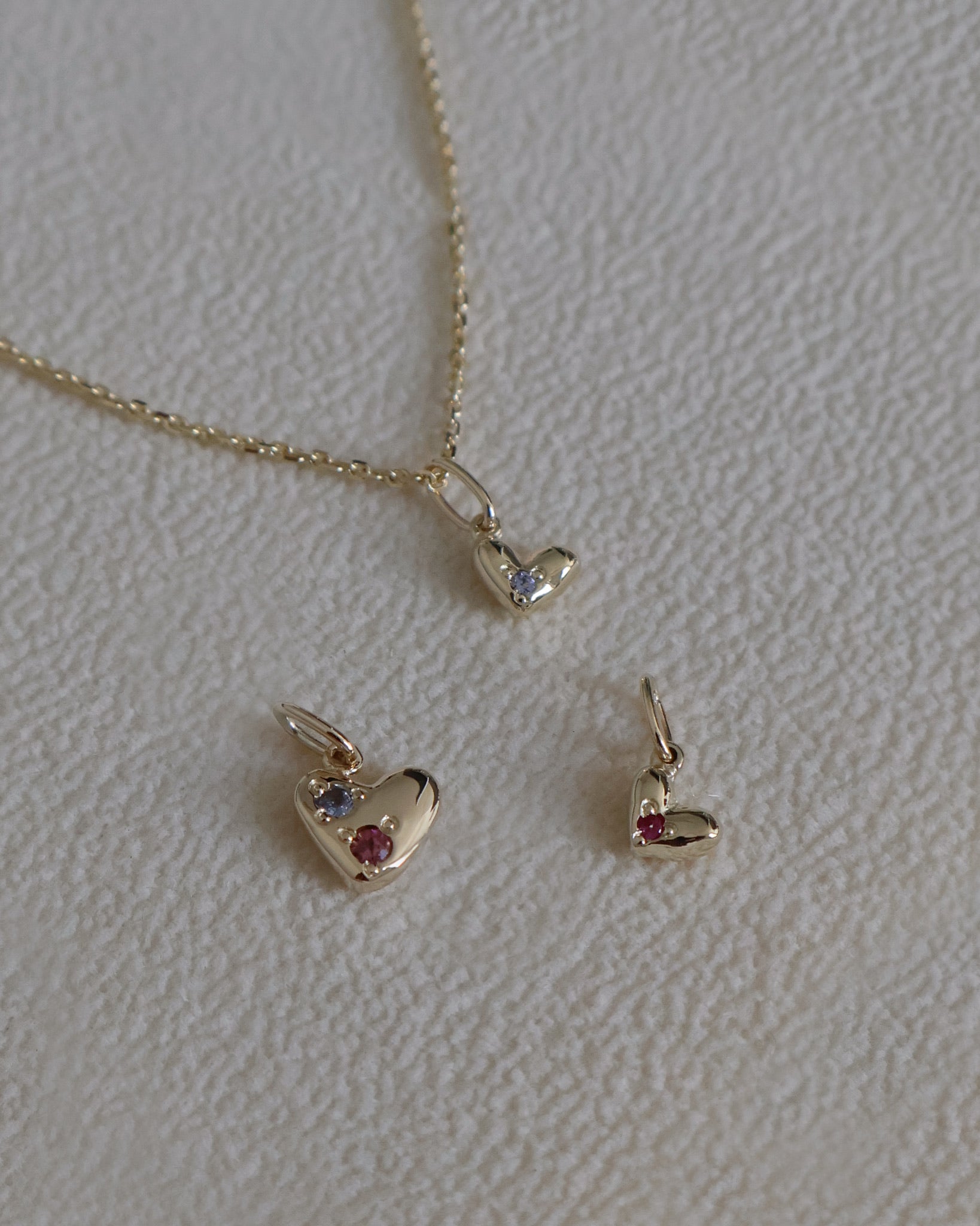 Mini Heart Stone Pendant | Solid Yellow Gold