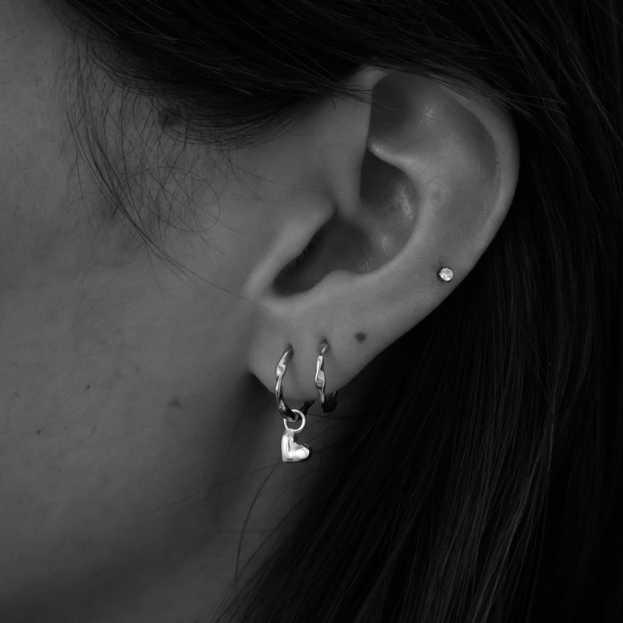 This charm can be worn on Linden Cook Huggies, Linden Cook Coil Hoops and Linden Cook Ribbon Huggies.