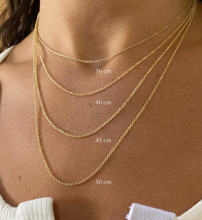 The best way to measure your desired necklace or bracelet length is to take a piece of string or chain and wrap it around your neck or wrist to your desired length, and then hold this length against a ruler to figure out the length in CM.